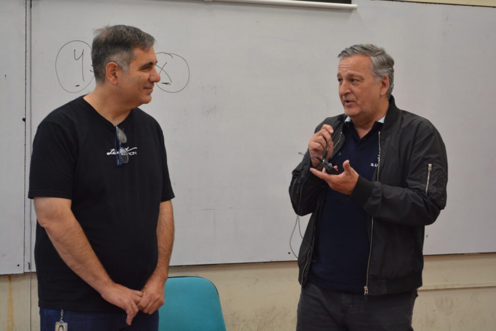 Específicamente, ayer tuvo lugar la última clase de las cursadas de los cinco módulos de los que constó la Diplomatura, cuyo cierre contó con la presencia y palabra del Secretario General de SUETRA, Juan Esteves, así como del Decano de la Facultad de Ingeniería, Diego Serra.