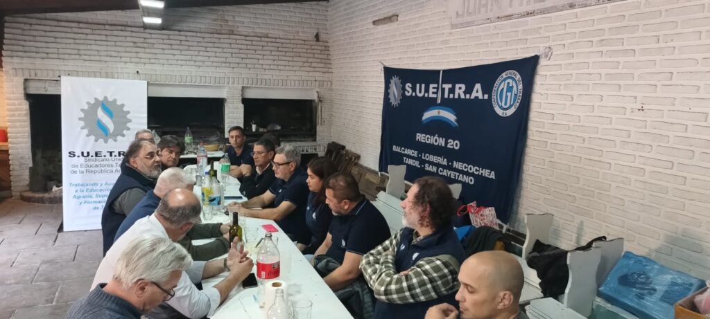 Fueron parte también Gustavo Rodríguez, director del CFL N°403 y delegado de SUETRA Necochea; Horacio Pili, director del CFL N°401 de Tres Arroyos; Marcelo Trinidad (referente RE18), Jorge Ciarlantini (referente de RE23); Daniel Fernández (IETP RE5), y los compañeros Carlos Dicosimo (delegado del CENS N°457), Claudio Hermida (delegado CFL N°403), Juan Hernández (delegado EEST N°2), Diego Tripiana (delegado EEST N°1), Juan Metilli (delegado EEST N°5) y Nahuel Rodríguez (director del CENS N°457).
