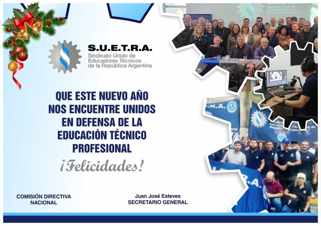 SUETRA agradece el acompañamiento y respaldo a lo largo de este año que concluye y desea que el 2026 nos encuentre más unidos que nunca en defensa de la Educación Técnico Profesional.