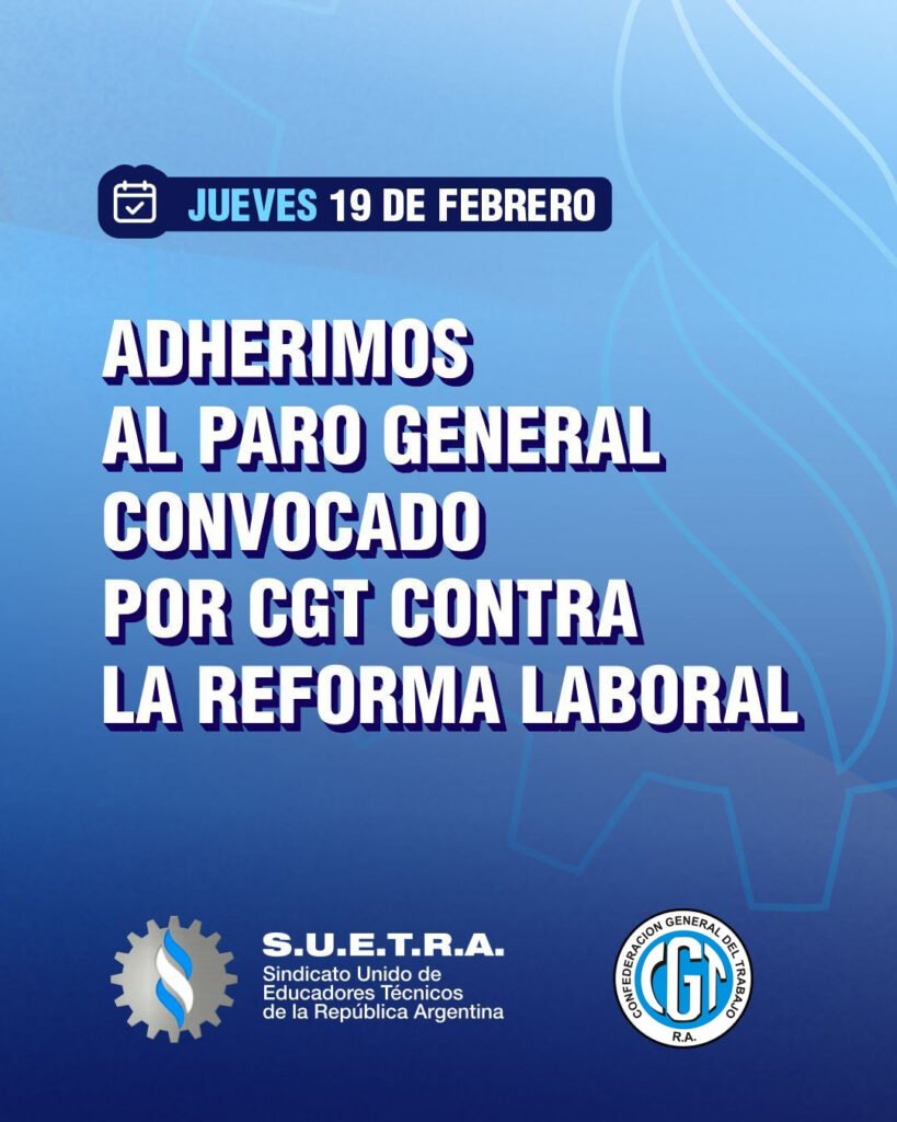 SUETRA adhiere a la medida de fuerza dispuesta por la Confederación General del Trabajo (CGT) contra el regresivo proyecto de Reforma Laboral.